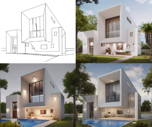 • 根据用户提供的语义标签合成风格相近的住宅外墙